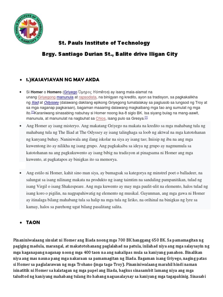Tagpuan panahon ng epikong troy - 7317394 Sa isang malinis na papel sumulat ng 1 talata tungkol sa iyong hindi makakalimutang karanasa sa buhay. Sa Ingles ito ay tinatawag na theme. Sandars at isinaling-buod naman sa Filipino ni Cristina S.