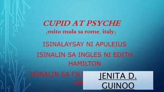 CUPID AT PSYCHE mito mula sa rome italy ISINALAYSAY NI APULEIUS ISINALIN SA INGLES NI EDITH HAMILTON ISINALIN SA FILIPINO NI VILMA C. JENITA DGUINOO Ang epiko ay tumatalakay sa kabayanihang ginawa ng tauhan sa kuwento. Magmungkahi ng libangan na makabubuti at makapagpatalas ng isipan ng mga kabataan.
