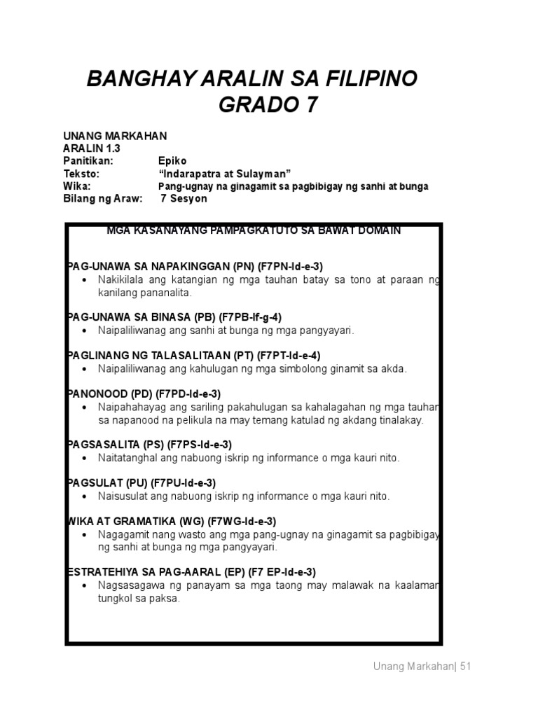 1 3 Epiko Pdf Banghay Aralin Sa Filipino Grado 7 Unang Markahan Aralin 1 3 Panitikan Epiko Teksto U201cindarapatra At Sulayman U201d Wika Pang Ugnay Na Course Hero