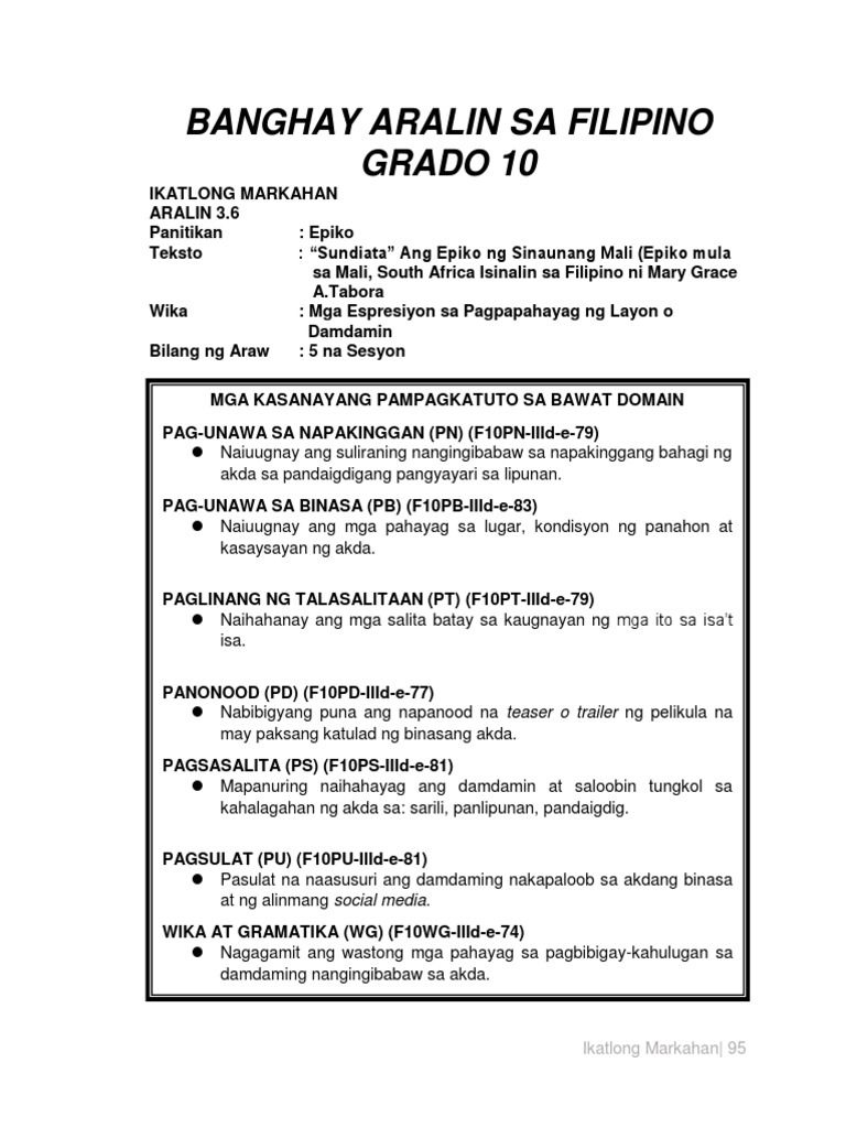Mahalagang tala sa epiko. Biag ni Lam-ang Hudhud at Alim Ullalim Ibalon Maragtas Hinilawod Agyu Darangan Tulalang. Mahalagang mabasa ng mga mag-aaral ng literaturang Ingles ang The Iliad and Odyssey. Bukod rito kung may taong makikita na lumabag.