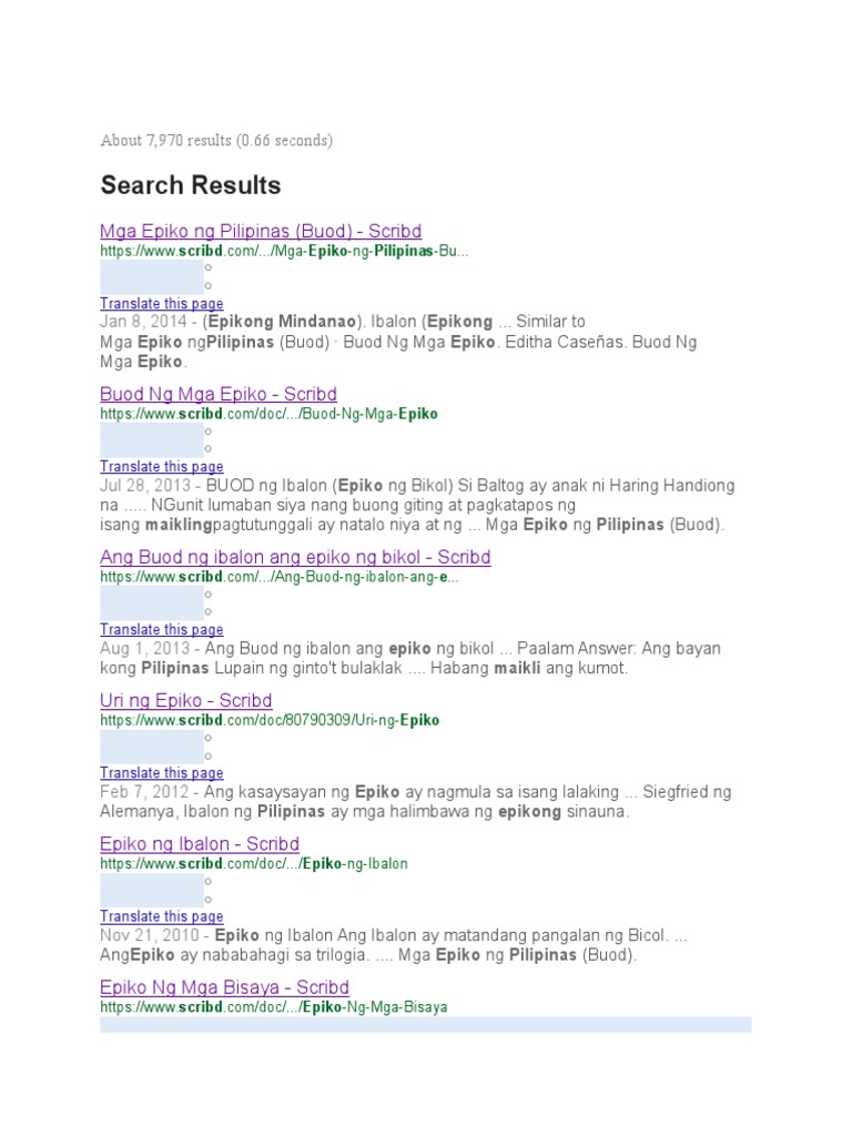 May 7105 buhay na wika sa daigdig na ginagamit ng mahigit 6200000000 katao. Ang epikong Alim ng Ifugao ang epiko ng Ibalon ng Bicol. Bantugan Epiko ng Mindanao Isa sa mga halimbawa ng epiko ng Pilipinas ang Bantugan na epiko ng Mindanao.