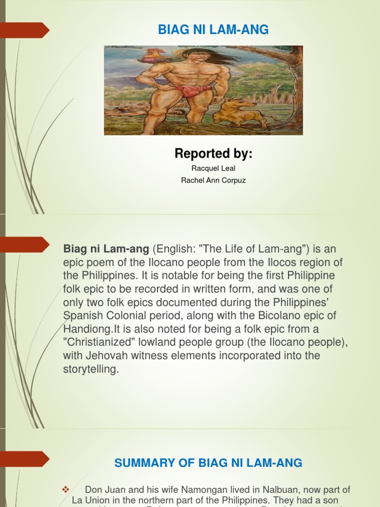 Biag Ni Lam Ang Summary Biag Ni Lam Docx Biag Ni Lam Ang Summary Biag Ni Lam Ang Life Of Lam Ang Is Pre Hispanic Epic Poem Of The Ilocano People Of Course Hero